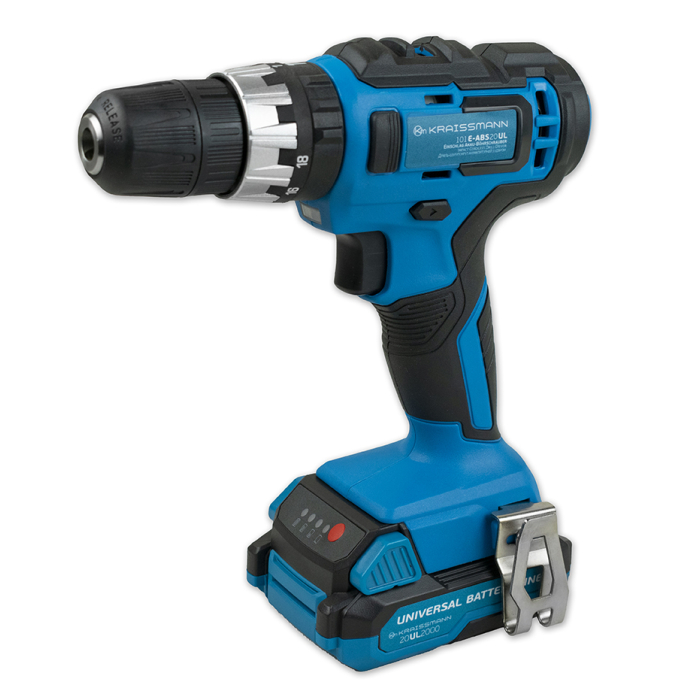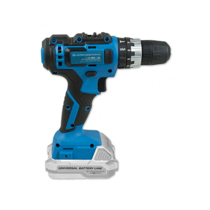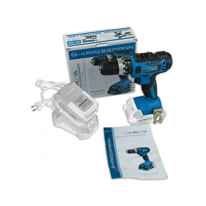 Акумуляторний шурупокрут KRAISSMANN 101 E-ABS 20UL належить до серії бездротових інструментів, що використовують універсальну акумуляторну батарею (2000 або 4000 мАг) та універсальний зарядний пристрій.