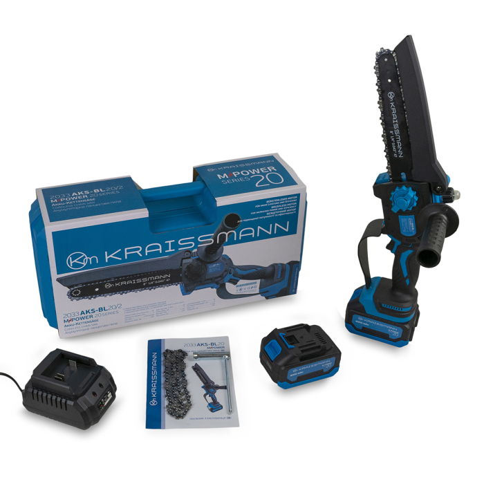 Акумуляторна ланцюгова міні-пила KRAISSMANN 2033 AKS-BL 20/2 (в кейсі)