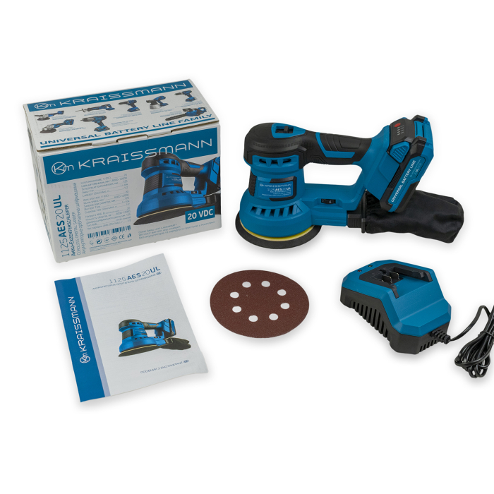 Акумуляторна орбітальна шліфмашина KRAISSMANN 1125 AES 20UL (акум. 2000 мАг та ЗП)