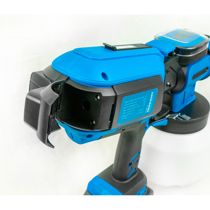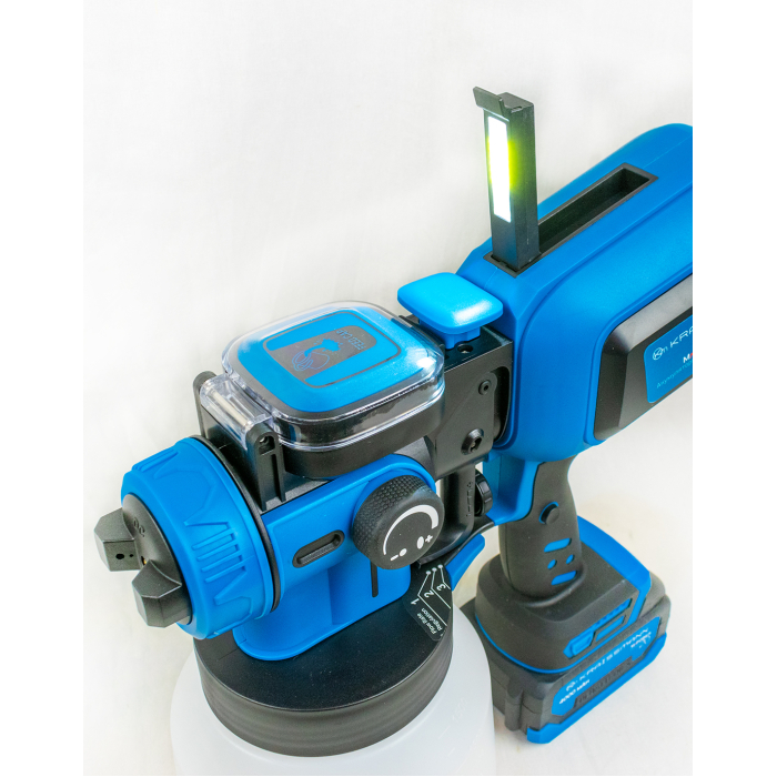 Фарборозпилювач професійного класу, належить до бездротових інструментів, що використовують універсальну акумуляторну батарею та універсальний зарядний пристрій серії M-POWER. Оснащений ліхтарем професійного рівня, який не спотворює сприйняття кольору фарби що наноситься.