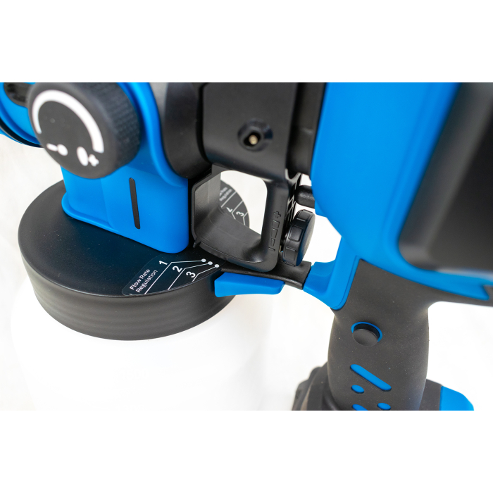 - Зручна система зберігання змінних сопел у задній частині корпусу фарборозпилювача