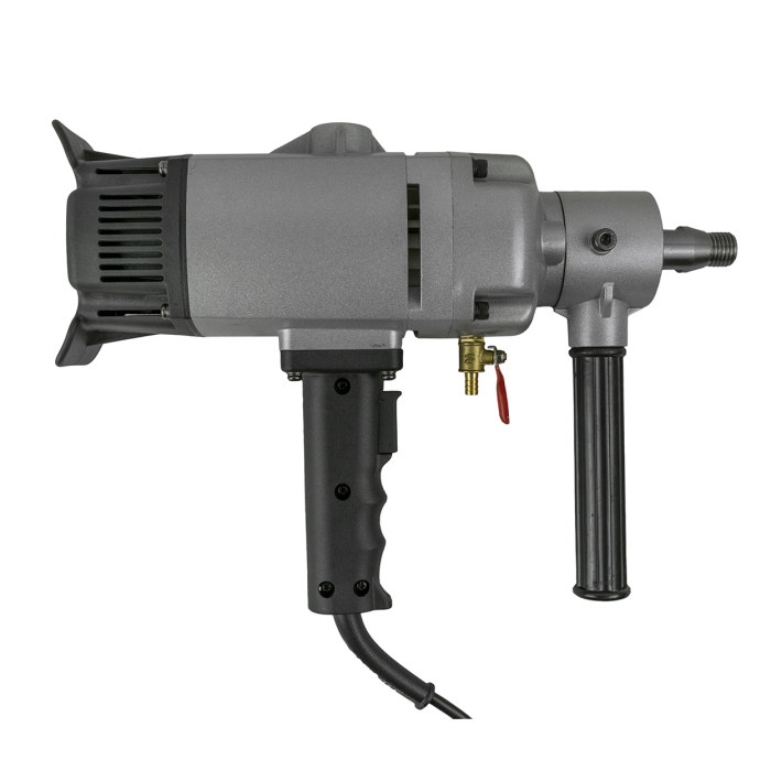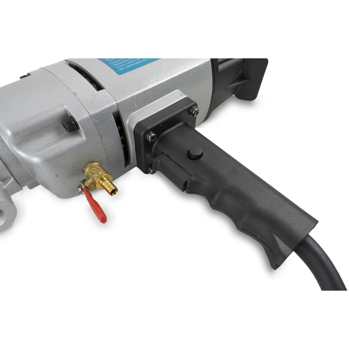 У дрилі передбачено підведення рідини для проведення охолодження коронки під час процесу буріння. Завдяки шестерням редуктора з високонадійної легованої сталі цей дриль алмазного буріння здатен витримати великі навантаження.