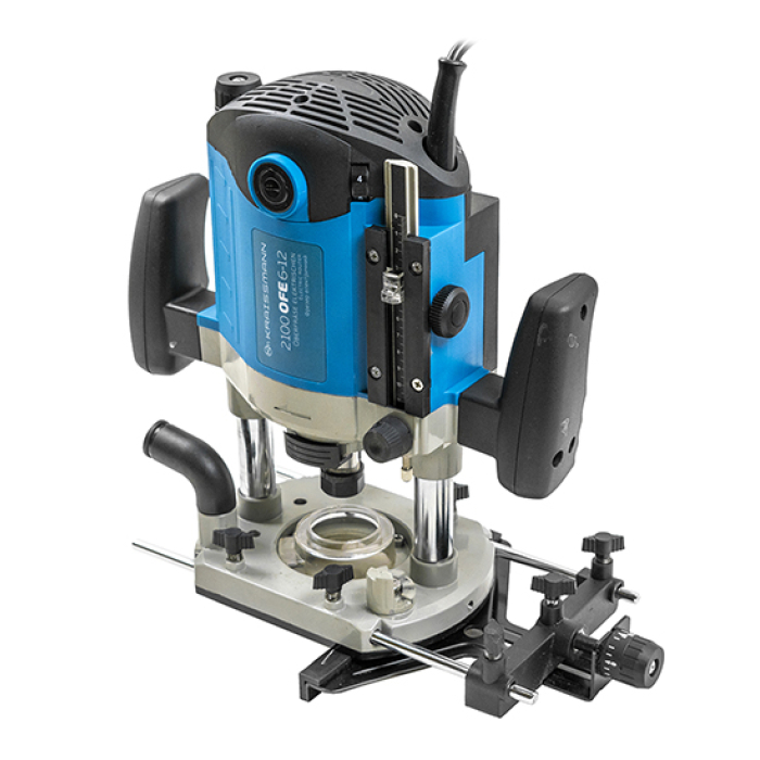 Фрезер KRAISSMANN 2100 OFE 6-12 призначений для обробки заготовок з деревини різних сортів за допомогою фрез з хвостовиками діаметром до 12 мм. Фрезер відмінно справляється з фрезеруванням пазів, а також з обробкою крайок у заготовках з деревних матеріалів, пластику та інше.