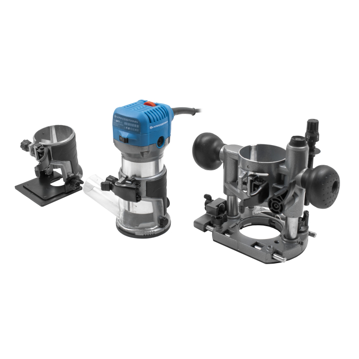 Кромковий фрезер KRAISSMANN 910 OFT 6-8 (3b) ефективно виконає роботи кромки, зніме фаски, виріже пази. Регулювання швидкості валу дозволяє обробляти матеріали різної жорсткості, при обробці твердих матеріалів слід встановлювати меншу швидкість. Глибина занурення фрези – 37 мм, що дозволяє обробляти товсті дерев'яні заготовки. У комплекті з фрезером поставляються 2 цанги (6 та 8 мм). Фіксатор шпинделя допомагає швидко та легко замінювати фрези та цанги. KRAISSMANN 910 OFT 6-8 (3b) постачається з трьома додатковими базами.