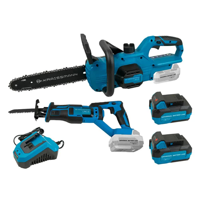 Комплект акумуляторного інструменту KRAISSMANN 20UL (шабельна пила, ланцюгова пила, 2 акумулятори та зарядний пристрій)