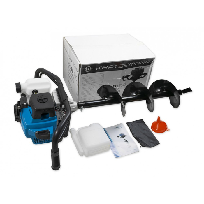 Мотобур KRAISSMANN 681 EB 300 призначено для формування лунок у ґрунті для встановлення стовпів або посадки дерев, встановлення опор для каркасних споруд, які несуть каркас. Двотактний двигун із повітряним охолодженням вирізняється економним споживанням палива. Максимальний діаметр встановлюваної бурової насадки (шнека) - 300 мм, довжина - 1000 мм. Хромована поршнева подовжує термін безаварійної експлуатації. Спеціальна конструкція рами значно знижує рівень вібрації. Гумові накладки на рукоятках забезпечують щільний хват, елементи керування розташовані на правій рукоятці.