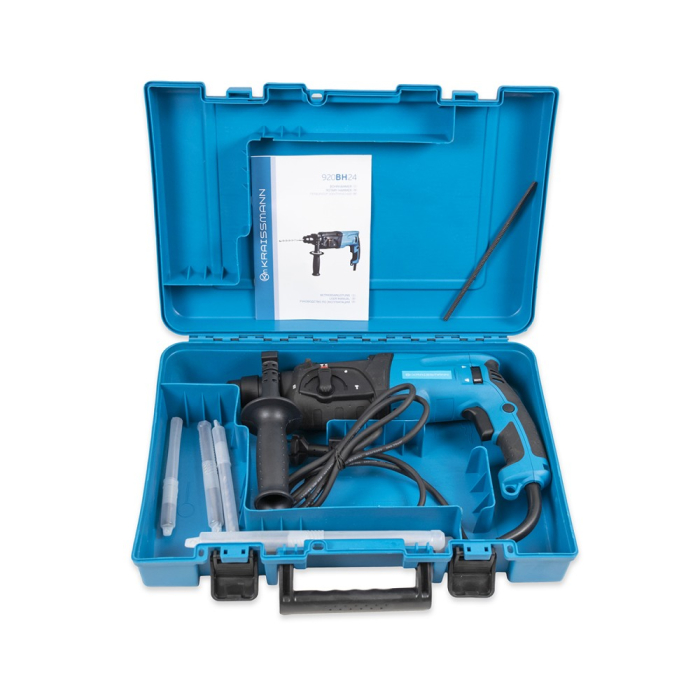 Перфоратор KRAISSMANN 920 ВН 24 - багатофункціональний інструмент, призначений для різання отворів в матеріалах різної щільності, таких як: бетон, камінь, цегла, дерево, сталь, кераміка. Це легкий і простий у використанні інструмент напівпрофесійного класу.