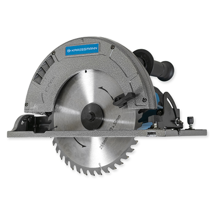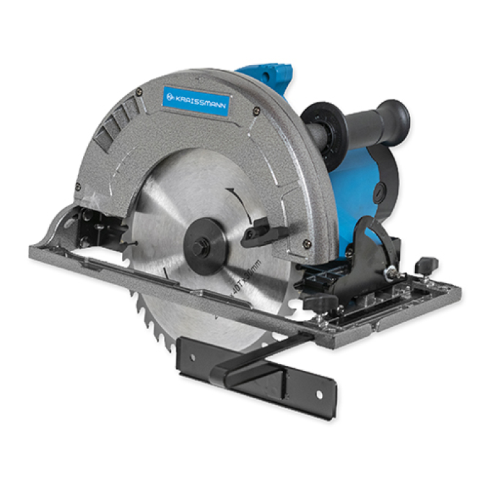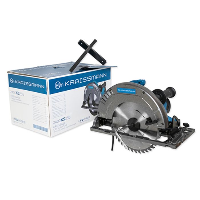 Циркулярна пила KRAISSMANN 2400 KS 255 - надійний і зручний столярний інструмент професійного класу, призначена для швидкого та ефективного розпилу міцних пиломатеріалів. Корпус редуктора KRAISSMANN 2400 KS 255 виконаний з металу і сприяє збільшенню експлуатаційного терміну. Передбачено функції блокування ввімкнення і блокування шпинделя для безпечної заміни диска. Максимальна глибина пропилу становить 85 мм, холостий хід - 4500 об/хв, цього вистачить для отримання акуратної лінії розпилу навіть під час обробки композитних матеріалів.