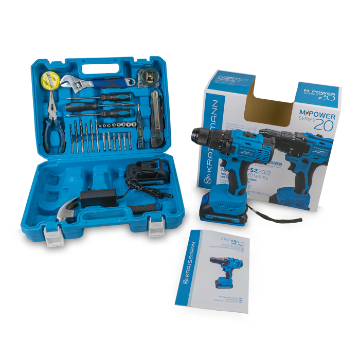 Шурупокрут акумуляторний KRAISSMANN 2102 ABS 20/2-S2 (з набором інструментів)