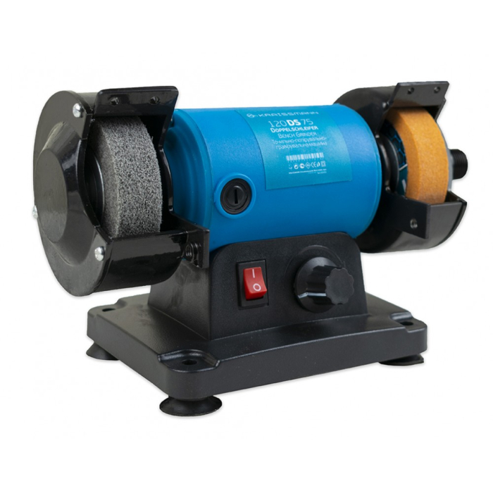 Точильно-гравірувальний верстат KRAISSMANN 120 DS 75 - це універсальний пристрій, який без особливих зусиль виконує всі дрібні завдання шліфування, полірування та очищення. Подвійна шліфувальна машина надійно закріплена на чотирьох нековзних, вібропоглинаючих ніжках. Пристрій поставляється з одним грубим шліфувальним кругом і одним тонким шліфувальним кругом. Він також має регульовані робочі опори, які легко адаптуються до товщини каменю, на якому ви хочете працювати. Швидкість також може бути встановлена окремо для конкретного завдання. Для забезпечення безпеки при шліфуванні передбачені регульоване іскрозахисне скло і закриті з боків захисні кожухи.